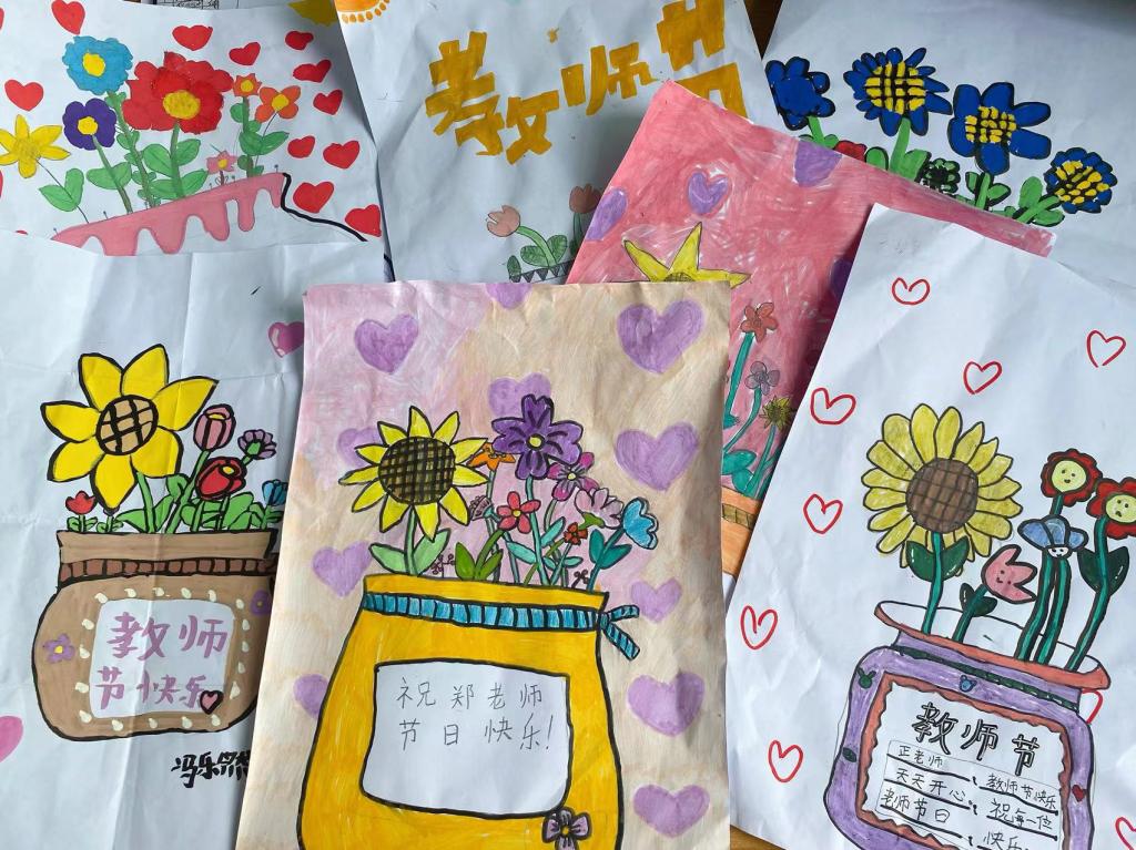 一年級新生在“朱砂啟智”拜師禮活動中,老師們手持毛筆,筆蘸朱砂,在孩子們的額頭正中點上一個圓圓的紅記,種下一顆希望的種子,開啟孩子們智慧的大門。孩子們感恩鞠躬,表達對老師無限的尊敬與感謝并鄭重許下新學期承諾。在各班級“感念師恩”主題實踐活動中,同學們用賀卡、手工花束等自制禮物,用獨特的方式來表達對老師的感恩之心和對老師的節(jié)日祝福。