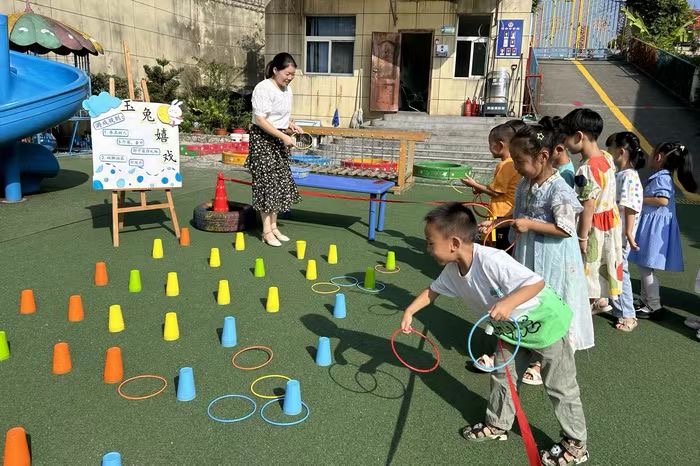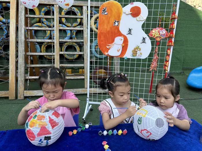 根據(jù)幼兒年齡特點,本次游園會設(shè)置了“后羿射箭”“嫦娥奔月”“玉兔嬉戲”“月滿情圓”“花燈盞盞”“對月當歌”等既有民間特色又充滿趣味的游戲項目。孩子們在老師的帶領(lǐng)下套圈、跳房子、做月餅、繪花燈、猜謎語……每完成一個游戲還可獲得一份小禮品。孩子們玩得不亦樂乎,幼兒園里熱鬧非凡,到處洋溢著歡聲笑語。