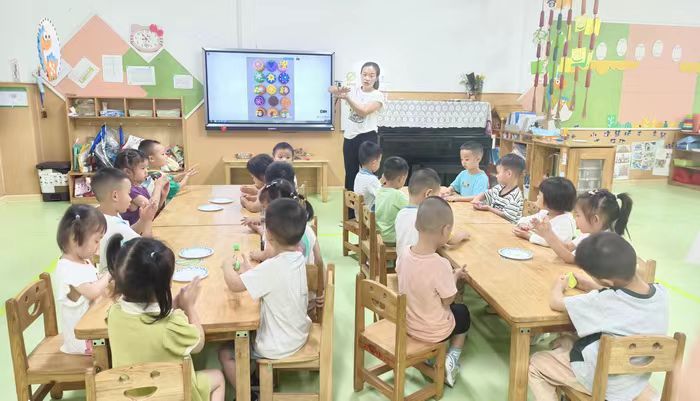 老師帶領(lǐng)孩子們繪玉兔、月餅,孩子們拿起多彩畫筆、展開豐富想象,涂一涂、畫一畫、剪一剪、貼一貼,在畫紙上留下自己心中的月餅、玉兔的模樣,感受傳統(tǒng)節(jié)日的意蘊(yùn)與魅力。大班的孩子們還在老師的指導(dǎo)下做繪花燈、描團(tuán)扇、疊紙花、做賀卡,在創(chuàng)玩活動(dòng)中增強(qiáng)了孩子們動(dòng)手操作能力。