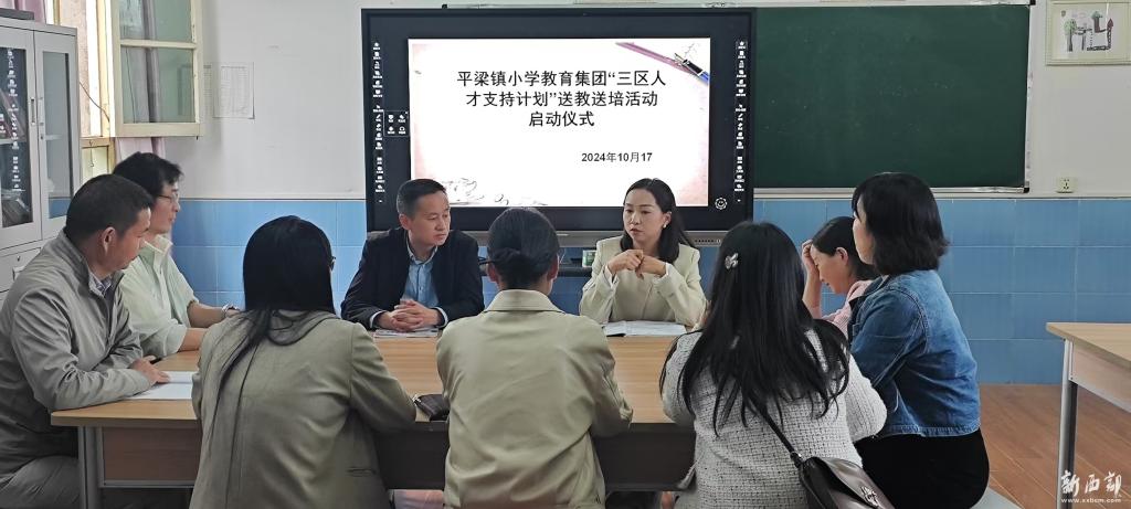 新西部網(wǎng)消息(通訊員姚華玖)為落實平梁鎮(zhèn)小學(xué)教育集團“三區(qū)人才支持”計劃,助力集團兄弟學(xué)校學(xué)科均衡發(fā)展,引領(lǐng)青年教師專業(yè)成長。10月17日,英語學(xué)科縣級教學(xué)能手、平梁鎮(zhèn)中心小學(xué)英語學(xué)科骨干教師郭丹到集團所屬的高梁小學(xué)開展了一節(jié)精彩的英語示范課,集團所屬三所小學(xué)青年英語教師何小榮、邱青、吳玉熙、蔣方圓參與聽課評課,市級優(yōu)秀英語教師賴春萍全程聽課、評課并提出指導(dǎo)意見。平梁鎮(zhèn)中心小學(xué)副校長王艷麗、教導(dǎo)主任徐濤和高梁小學(xué)幾位其他學(xué)科老師隨同聽課。