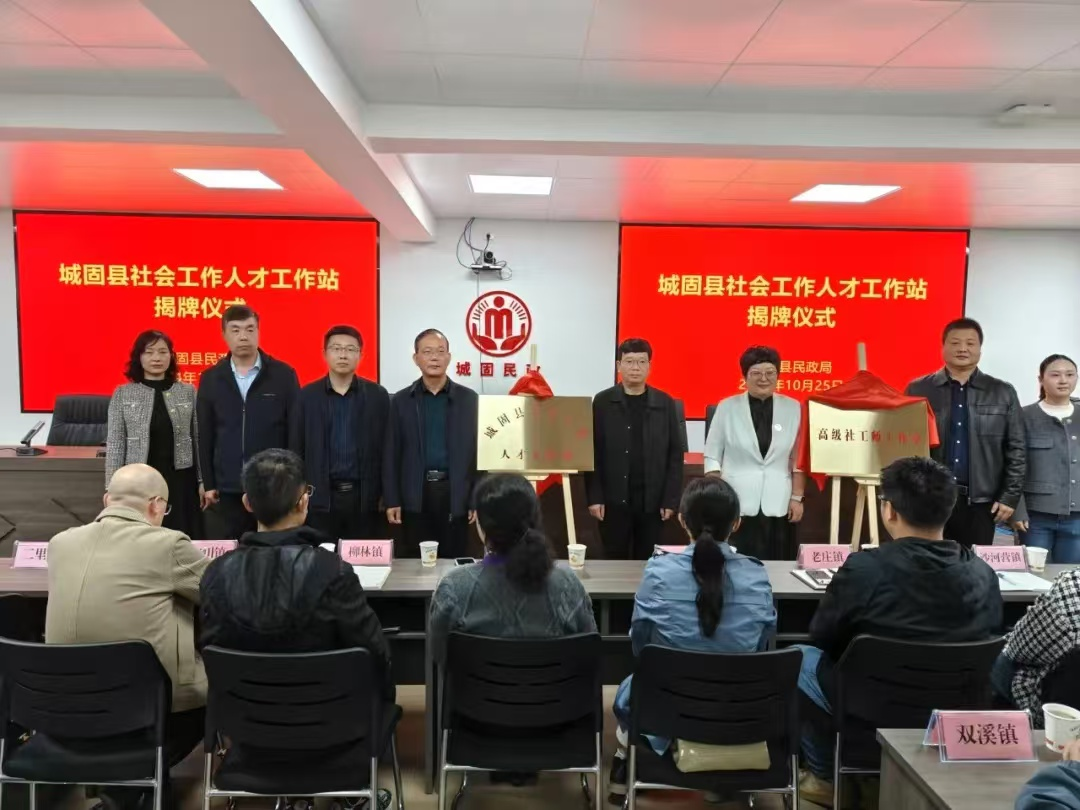 新西部網(wǎng)訊(周麗 李晶 蘇紅義)近日,城固縣社會(huì)工作人才工作站揭牌儀式暨社會(huì)工作人才培訓(xùn)會(huì)在縣民政局隆重舉行,17個(gè)鎮(zhèn)(街道)社工站負(fù)責(zé)人、28名社區(qū)支書、28名社區(qū)一線社工,5家社會(huì)工作服務(wù)機(jī)構(gòu)負(fù)責(zé)人、縣社工總站及縣民政局相關(guān)股室共計(jì)90余人參加揭牌儀式和培訓(xùn)會(huì)。陜西省社會(huì)工作協(xié)會(huì)會(huì)長、西北大學(xué)社會(huì)學(xué)與社會(huì)工作系副教授劉瑩、市民政局社會(huì)組織管理科科長張巍、縣委社會(huì)工作部部長熊志銀、縣委組織部人才股股長王源龍對(duì)“城固縣社會(huì)工作人才工作站”和“高級(jí)社工師工作室”進(jìn)行了揭牌,儀式由縣民政局黨組書記、局長李大群主持。