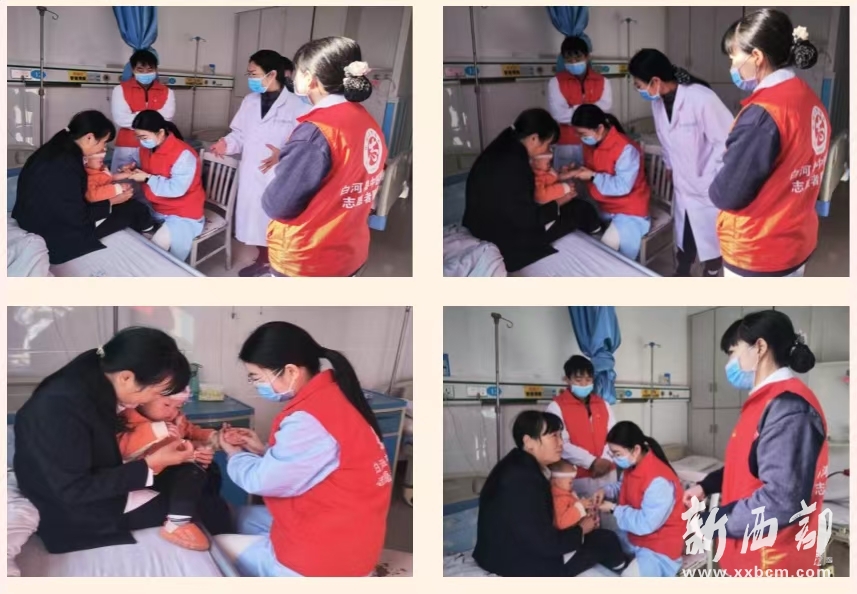 活動現(xiàn)場,白河縣中醫(yī)醫(yī)院院長楊翊帶領黨員醫(yī)護們走進兒科病房,開始了小兒推拿技術的實踐之旅。管床醫(yī)師周耀興與患兒家長進行細致溝通,解釋推拿的目的、方法及效果,取得他們的理解和配合,楊翊根據(jù)患兒的具體病情,指導小兒推拿治療師劉玉潔運用所學手法,輕柔而準確地進行推拿治療,同時密切觀察患兒的反應,及時調整治療方案。治療后,護士長劉瓊詳細記錄,針對患兒的病情告知患兒家屬小兒推拿治療后的生活護理知識。經(jīng)過實踐,黨員醫(yī)護人員的小兒推拿技術得到了患兒家長的好評,患兒的癥狀得到了明顯緩解。這不僅體現(xiàn)了中醫(yī)藥在兒科領域的獨特優(yōu)勢,也展示了黨員醫(yī)護人員的高尚醫(yī)德和精湛醫(yī)術。