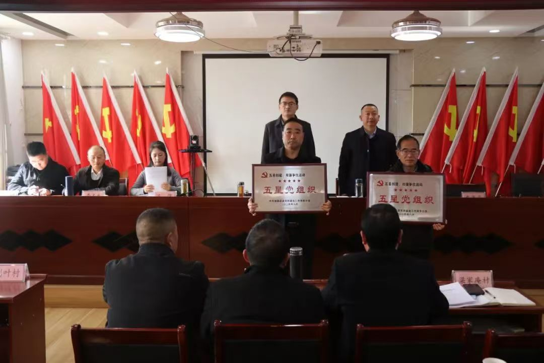 在活動(dòng)現(xiàn)場(chǎng),鎮(zhèn)上向榮獲前三名的安樂(lè)堂村、沙井社區(qū)、袁家營(yíng)村黨支部頒發(fā)了流動(dòng)紅旗,并向成功創(chuàng)建“五星黨組織”的梁家庵村、安樂(lè)堂村黨支部頒發(fā)了獎(jiǎng)牌。