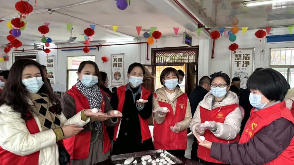 最后,全體黨員干部齊動(dòng)手,拿出準(zhǔn)備好的糯米粉、芝麻餡,為老人包湯圓。在揉面、拌餡、包湯圓的過程中你說我笑,氣氛熱烈。當(dāng)把象征團(tuán)圓吉祥的湯圓送到每位老人的手中時(shí),老人們個(gè)個(gè)洋溢著幸福笑容。