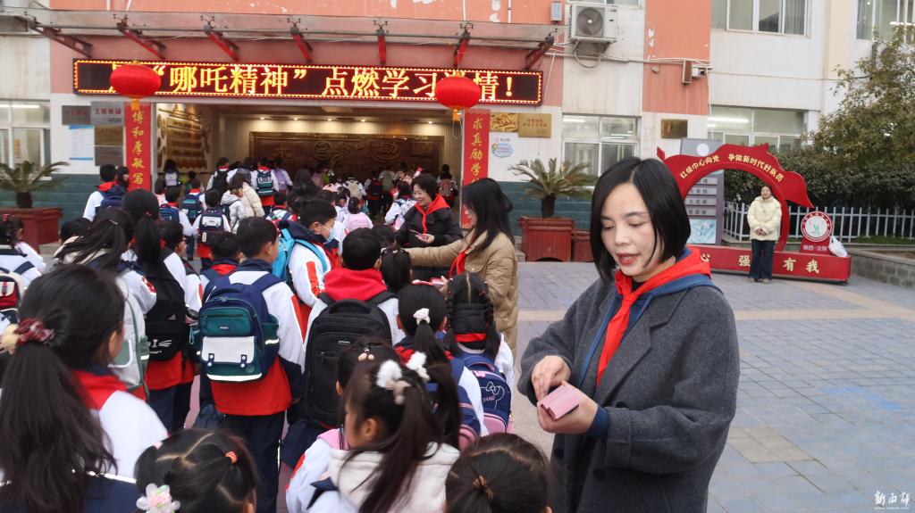 活動(dòng)在晨光中拉開(kāi)帷幕,學(xué)校行政團(tuán)隊(duì)全員出動(dòng),在校門口迎接每一位學(xué)生,為他們送上精心制作的書簽。書簽上印著《哪吒2》的精美圖片,還配有電影中的經(jīng)典語(yǔ)錄。鼓勵(lì)他們?cè)谛聦W(xué)期像哪吒一樣,勇敢地面對(duì)學(xué)習(xí)和生活中的挑戰(zhàn),堅(jiān)定信念,追逐夢(mèng)想。