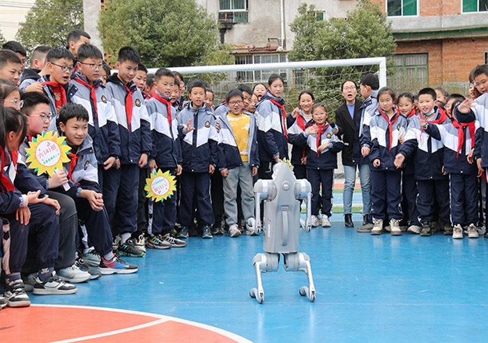 滾珠穿墻、空中成影等各種科技展品琳瑯滿目,同學(xué)們紛紛圍攏在展品周圍,認(rèn)真聆聽工作人員的耐心講解和演示,感受科學(xué)的神奇。阿爾法機(jī)器人、智能機(jī)器狗和人形機(jī)器人依次登場,它們與學(xué)生開展互動,現(xiàn)場表演唱歌、跳舞等節(jié)目,流暢的動作、精準(zhǔn)的指令執(zhí)行,讓孩子們驚喜不已,展現(xiàn)出人工智能領(lǐng)域的前沿成果,讓同學(xué)們沉浸式感受科技與藝術(shù)碰撞出的火花 ??萍拣^工作人員還邀請學(xué)生參與微型火箭發(fā)射、液氮蘑菇云、火云掌等趣味實(shí)驗(yàn),讓同學(xué)們近距離感受科技的無窮魅力。