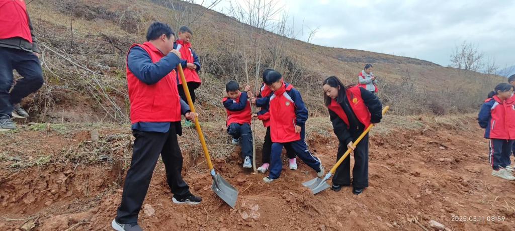 新西部網(wǎng)消息(通訊員 姚華玖)3月11日,漢陰縣平梁鎮(zhèn)中心小學(xué)黨支部書記、校長楊繼梓,副書記劉康漢帶領(lǐng)學(xué)校部分黨員教師組成志愿植樹隊(duì)伍,前往平梁鎮(zhèn)清河村植樹現(xiàn)場舉行“綠色承諾 從我做起”主題黨日活動(dòng)。少先隊(duì)大隊(duì)輔導(dǎo)員陳楊柳帶領(lǐng)12 名少先隊(duì)員一同前往參加植樹活動(dòng)。