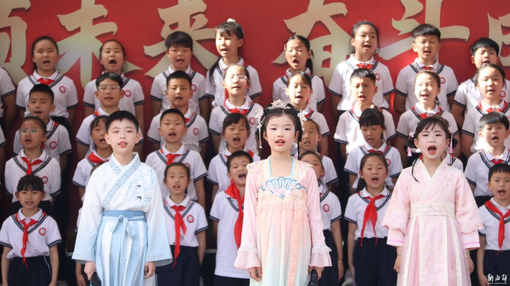隨后,各年級學(xué)生依次登臺(tái),帶來精彩誦讀。五年級的《五星耀東方》盡顯磅礴,傳遞愛國之情;二年級的《四季詩韻》,孩子們用稚嫩童聲勾勒四季詩意;四年級的《紅色的童話》生動(dòng)演繹,傳承紅色基因;一年級的《學(xué)唐詩》活潑俏皮,開啟唐詩探索;三年級的《如果沒有李白》解讀獨(dú)特,盡顯詩仙魅力;六年級的《祖國贊歌》激昂澎湃,將活動(dòng)推向高潮。