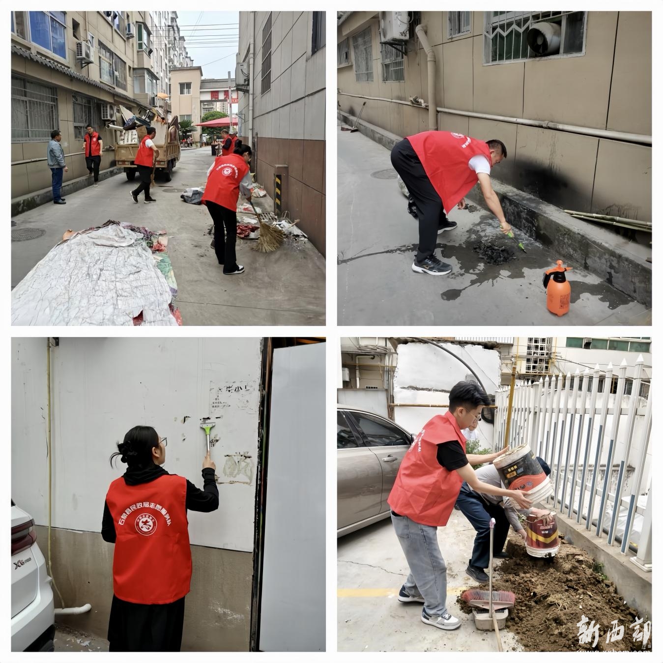 4月29日,石泉縣民政局全體干部職工下沉網(wǎng)格開展集中攻堅(jiān)。大家分組行動,手持工具清理綠化帶垃圾、鏟除墻面“牛皮癬”、規(guī)范非機(jī)動車停放,對背街小巷、樓道角落進(jìn)行“地毯式”清掃。行動當(dāng)天,共清運(yùn)垃圾1車,整治亂堆亂放點(diǎn)位20余處,社區(qū)面貌煥然一新。居民大姐稱贊道:“角落里這些雜物拾掇干凈了,看著都舒心!”