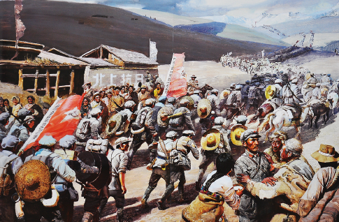 1936年6月3日,紅六軍團(tuán)在貴州畢節(jié)理化以南之甲洼,與前來迎接的紅三十二軍會(huì)師。隨后經(jīng)理化、巴塘、白玉,于22日到達(dá)四川甘孜普玉隆,與紅四方面軍會(huì)師,受到紅軍總司令部和紅四方面軍領(lǐng)導(dǎo)同志的迎接。30日,紅二軍團(tuán)到達(dá)甘孜附近的絨壩岔,與紅三十軍會(huì)師。