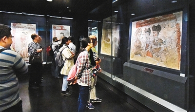 游客在陜西歷史博物館觀看《唐代壁畫珍品展》記者 張宇明 攝