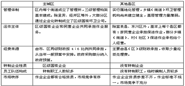 昆明八個主城區(qū)與其他縣區(qū)環(huán)衛(wèi)市場化改革情況對比: