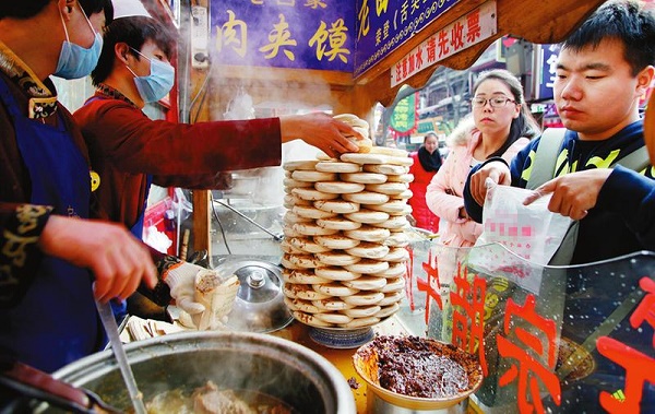 從街頭小吃到高端餐飲,夾饃儼然成為了一種潮流。無論是肉夾饃、土豆片夾饃還是搟面皮夾饃,在傳承和創(chuàng)新的碰撞中蘊(yùn)涵著精湛的技藝和智慧的集合。這技藝和智慧讓陜西的饃似乎是夾上啥,都能吃出名堂來。在陜西的網(wǎng)友間就流傳著這么一句話:“陜西的饃啥都能夾,而且夾啥啥火!”(記者王曉峰)