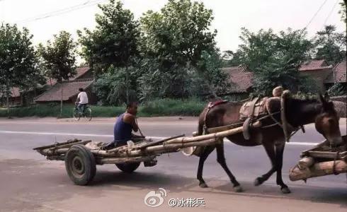 西安80年代的騾車,此種狀況是運輸建筑材料的磚、樓板。