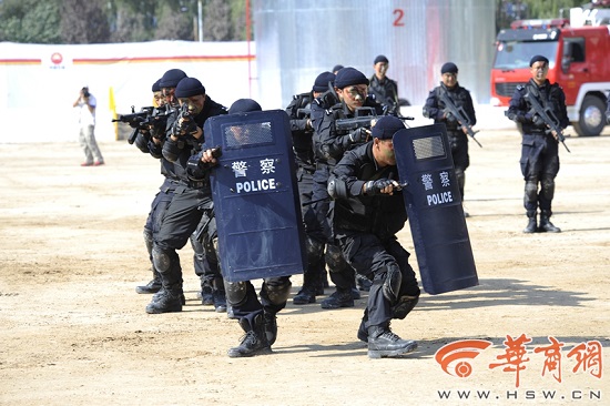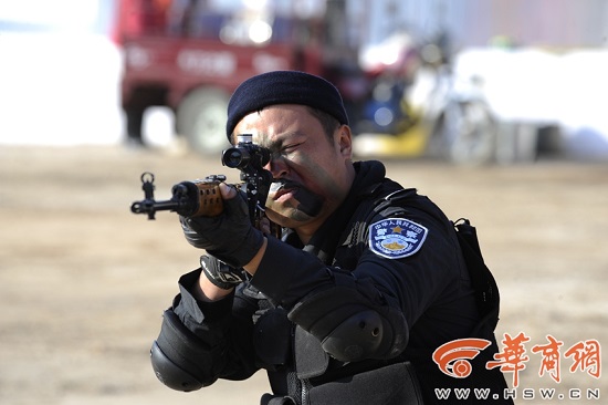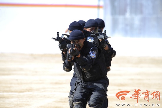 為實際檢驗延安的反恐處突綜合能力,8月28日,延安市公安機關(guān)舉行了“油田衛(wèi)士—2015”反恐防暴綜合演練。演練中,長慶油田第一采油廠組織模擬了儲油區(qū)爆炸等場景。安塞縣公安局巡特警大隊等六支隊伍展示了一些反恐技能。模擬演練現(xiàn)場,有人混入采油廠砍傷數(shù)名工作人員、引燃油罐后,延安市公安局立即啟動反恐怖緊急處置程序。最后成功擊斃、抓獲了犯罪人員,解救了人質(zhì),撲滅大火,并及時排除了爆炸裝置。