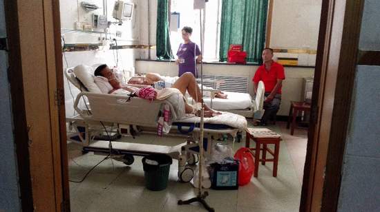 賀某(前)正躺在安康市中心醫(yī)院急診內科的病床上