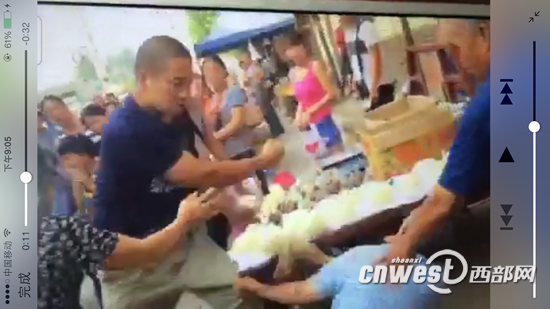 為此,老人與該菜商發(fā)生了口角。在老人家屬提供的視頻中看到,開始老人手拽一名女子頭發(fā)半蹲在地上。隨后,一男子用腳踹老人身體,胸部,盡管一直有人相勸,但男子仍然用拳頭擊打老人面部。