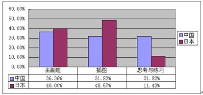 橫向比較可知,中國(guó)版誠(chéng)實(shí)守信通過(guò)主副題、插圖、思考與練習(xí)呈現(xiàn)的概率主副題最高,但是整體較為平均。日本版中主副題和插圖的頻率明顯高于思考與練習(xí),插圖和思考與練習(xí)之間的比例相差將近30個(gè)百分比。縱向比較可知,日本比中國(guó)更傾向于用插圖的形式呈現(xiàn)誠(chéng)實(shí)守信要素,而中國(guó)通過(guò)思考與練習(xí)呈現(xiàn)的頻率明顯高于日本,相差將近20%。