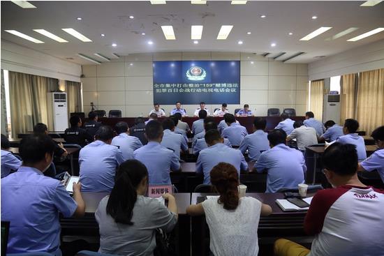 為集中打擊整治人民群眾反映強(qiáng)烈的“159”等賭博違法犯罪活動,凈化社會風(fēng)氣,深化“平安安康”建設(shè),7月10日,市公安局、工商局、文廣局聯(lián)合召開了集中打擊整治“159”等賭博違法犯罪百日會戰(zhàn)電視電話會議。市政府黨組成員、市公安局黨委書記、局長楊尚偉主持會議并講話,市公安局黨委委員、副局長邱祖滿、雷紹明,市工商局黨組成員、副局長申林斌,市文廣局黨組成員、副局長鄢明建出席了會議,市公安局相關(guān)警種、部門責(zé)任人及工商局、文廣局相關(guān)部門負(fù)責(zé)人在市公安局主會場參加會議;各縣公安局、分局主要領(lǐng)導(dǎo),相關(guān)警種部門負(fù)責(zé)同志,各派出所所長,各縣區(qū)工商、文廣局分管局領(lǐng)導(dǎo)及相關(guān)負(fù)責(zé)人在各縣區(qū)分會場參加了會議。