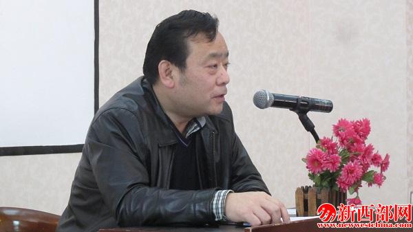 執(zhí)行社長沙建平回顧2014年度經(jīng)營工作、安排2015年度經(jīng)營工作。新西部網(wǎng) 王順利攝