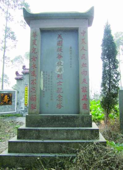 另有成都岳國華承辦的一碑,刻了《補記》,補敘營葬、遷骨時間、地點以及九名遇難者、八名生還者的漢字軍銜和英文名字,表達了中國人民對那些曾經(jīng)為援華抗日而犧牲的美國朋友的深切懷念。