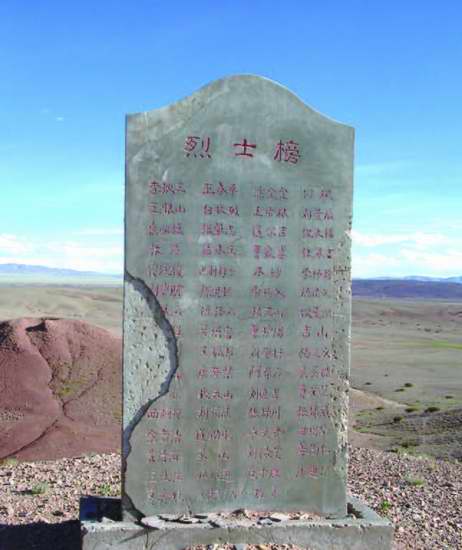 ▲矗立在阿里地區(qū)改則縣先遣鄉(xiāng)的一塊紀(jì)念碑,銘刻著進(jìn)藏先遣連犧牲者的名字。