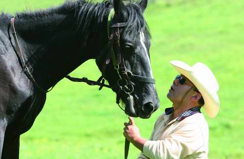漢唐馬文化傳播公司會客廳里,一幅照片吸引著記者的注意力。草場, 虛化成一片柔和的嫩綠。右側(cè)王兵頭略揚,似乎在對馬說著什么;馬兒眼瞼半垂,似乎在凝神傾聽。人與馬交流的溫馨畫面,被攝影師用快門定格了下來。