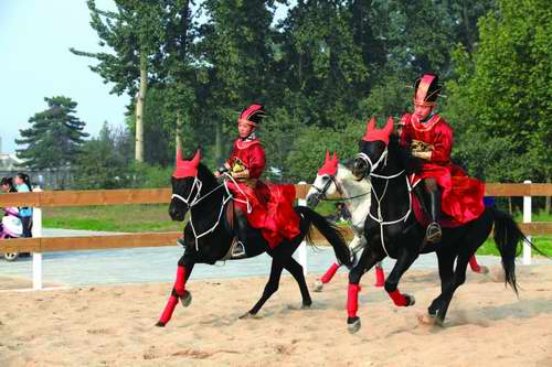 王兵在西安曲江臨潼度假區(qū)有了騎士衛(wèi)隊訓練基地(馬術俱樂部),今年,馬文化公司在西安體育學院成立了大學生馬術協(xié)會,并成為西安體院大學生馬術實習基地。馬術俱樂部擁有了3 0 0名以上的會員,新的馬術俱樂部也正在規(guī)劃設計當中,王兵的理想是將馬術這一貴族運動平民化。