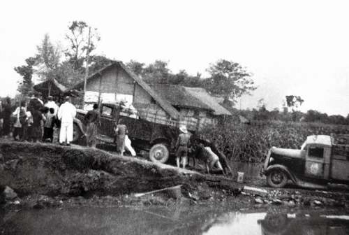 ▲運(yùn)送文物的車隊(duì)艱難行進(jìn)