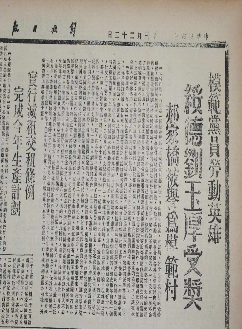 ▲習仲勛當年樹立的模范村和模范人物都被《解放日報》報道