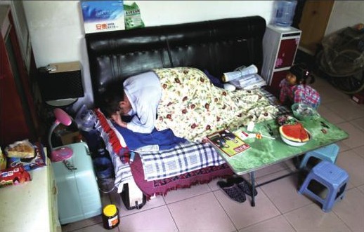 經(jīng)受了近10年塵肺病的煎熬,李寶平渾身上下已經(jīng)變形,面容枯槁。在接受記者采訪的過程中,他的淚水、鼻涕一直在流,枕邊的一條毛巾總是濕漉漉的。