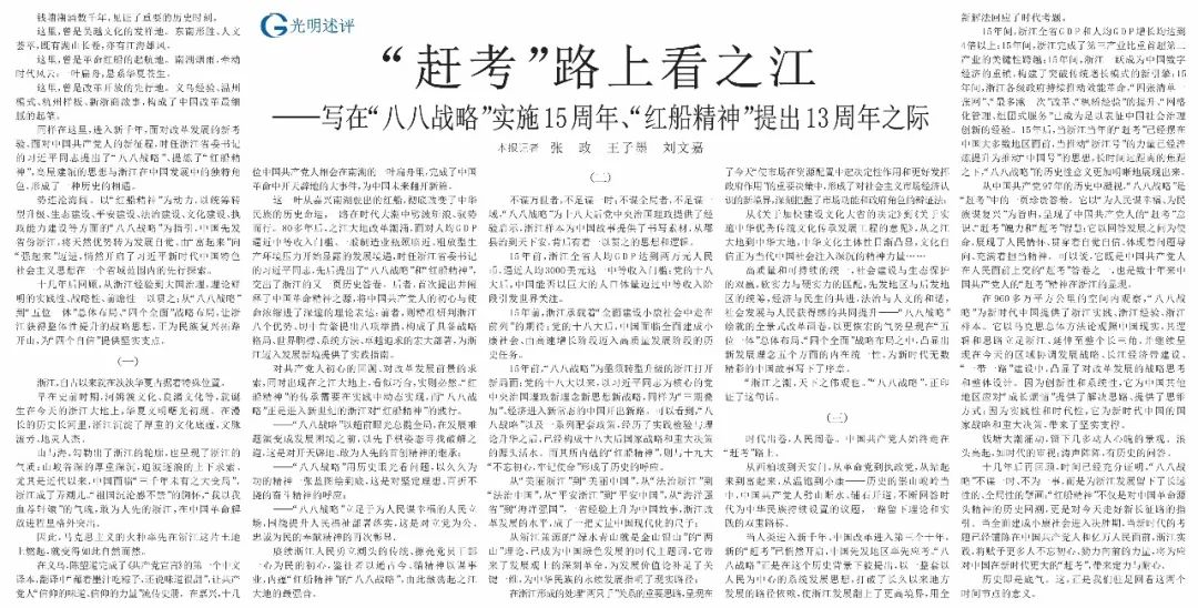 賡續(xù)浙江人民勇立潮頭的傳統(tǒng)、擦亮黨員干部一心為民的初心,鑒往者以通古今、循精神以謀事業(yè),內(nèi)蘊(yùn)“紅船精神”的“八八戰(zhàn)略”,由此激蕩起之江大地的最強(qiáng)音。