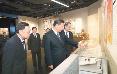 12月13日上午,中共中央、全國人大常委會(huì)、國務(wù)院、全國政協(xié)、中央軍委在南京隆重舉行南京大屠殺死難者國家公祭儀式,中共中央總書記、國家主席、中央軍委主席習(xí)近平出席。這是習(xí)近平在廣場儀式結(jié)束后參觀《南京大屠殺史實(shí)展》。