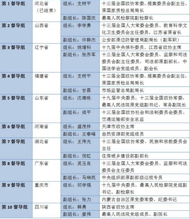 這次9個(gè)督導(dǎo)組同時(shí)分赴各地,各督導(dǎo)組的組長(zhǎng)、副組長(zhǎng)也一起披露,我們來(lái)看一下“陣容”。