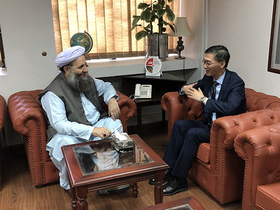 2018年9月19日,駐巴基斯坦大使姚敬會見巴宗教事務(wù)部長卡德里。(圖源:外交部網(wǎng)站)