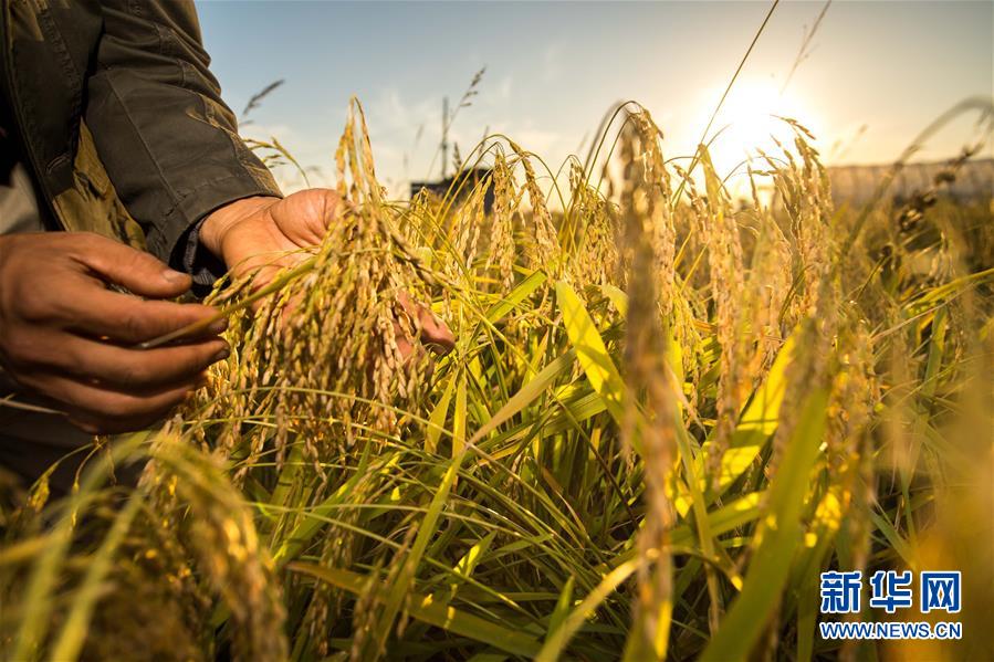在吉林省舒蘭市平安鎮(zhèn),農(nóng)民在稻田間觀察稻穗灌漿情況(2018年9月18日攝)。新華社記者 許暢 攝