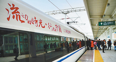 “時(shí)光列車”由人民日?qǐng)?bào)新媒體中心聯(lián)合中國鐵路總公司宣傳部、中國鐵路西安局集團(tuán)有限公司共同打造,以“流動(dòng)的時(shí)光·行進(jìn)的中國”為主題。據(jù)了解,即日起到4月底,乘坐中國鐵路西安局集團(tuán)有限公司西成高鐵的乘客,均有機(jī)會(huì)參與相關(guān)活動(dòng)。