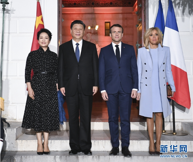 3月24日,國家主席習(xí)近平在尼斯會(huì)見法國總統(tǒng)馬克龍。習(xí)近平夫人彭麗媛、馬克龍夫人布麗吉特參加。這是習(xí)近平和夫人彭麗媛同馬克龍總統(tǒng)和夫人布麗吉特合影。 新華社記者 謝環(huán)馳 圖
