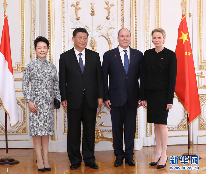 3月24日,國家主席習(xí)近平同摩納哥親王阿爾貝二世舉行會談。這是習(xí)近平和夫人彭麗媛同阿爾貝二世親王夫婦合影。新華社記者 鞠鵬 攝