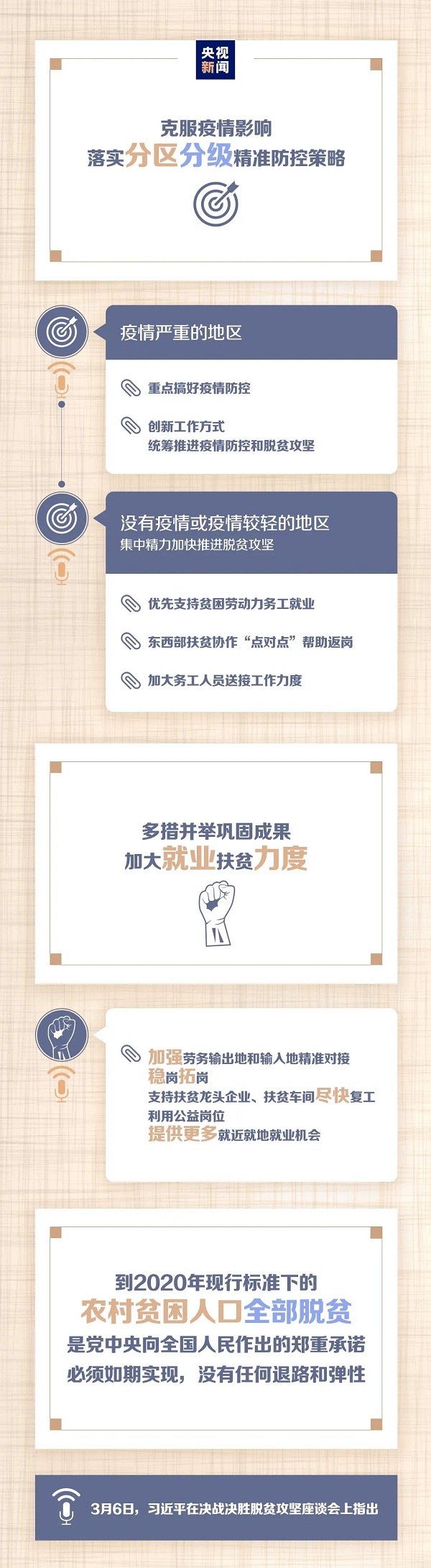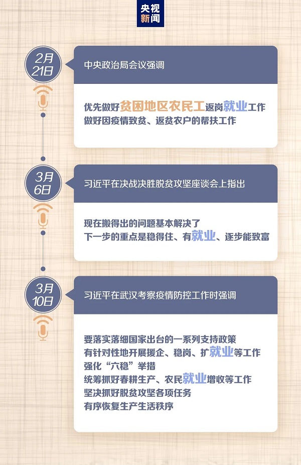 “強化‘六穩(wěn)’舉措,統(tǒng)籌抓好春耕生產(chǎn)、農(nóng)民就業(yè)增收等工作,堅決抓好脫貧攻堅各項任務(wù),有序恢復(fù)生產(chǎn)生活秩序。”