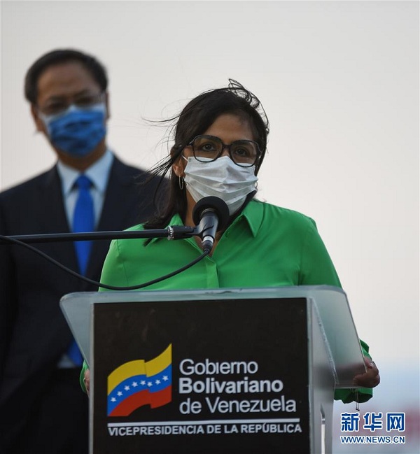 4月11日,在委內(nèi)瑞拉首都加拉加斯,委副總統(tǒng)羅德里格斯在授勛儀式上講話。 新華社發(fā)(薩爾戈多攝)
