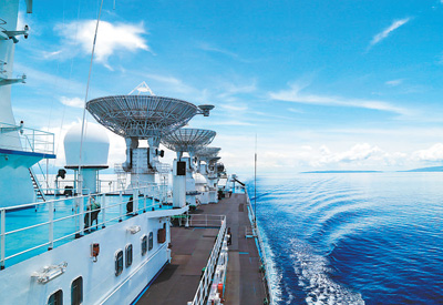 承擔(dān)海上測控通信任務(wù)的遠(yuǎn)望6號船在任務(wù)海域靜待發(fā)射。中國衛(wèi)星海上測控部供圖