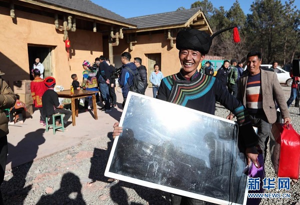 在四川省昭覺(jué)縣三河村的易地扶貧安置點(diǎn),彝族群眾馬海日聰喜搬新居(2019年2月11日攝)。2019年2月11日,位于大涼山腹地的四川省昭覺(jué)縣三河村首批29戶(hù)、168人告別居住多年的土坯房,搬入易地扶貧安置點(diǎn)的新家。新華社記者 江宏景 攝