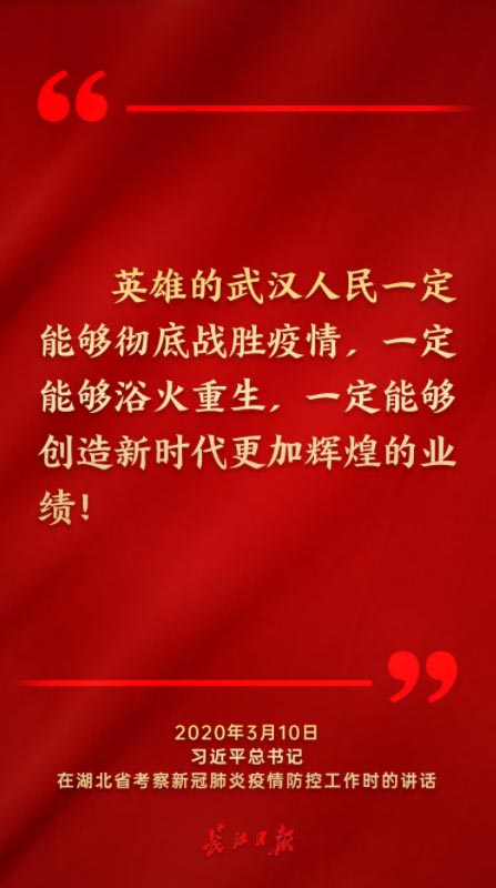 大戰(zhàn)大考,淬火成鋼。偉大抗疫精神凝聚強大力量,武漢人民披荊斬棘,戰(zhàn)疫、戰(zhàn)汛、戰(zhàn)貧、疫后重振,一仗接著一仗打,一仗接著一仗贏。
