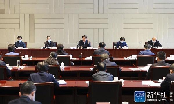 ↑4月13日,中共中央政治局常委、全國人大常委會委員長栗戰(zhàn)書在陜西西安主持召開黃河保護(hù)立法座談會。新華社記者 黃敬文 攝