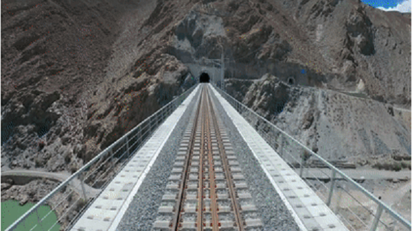 △2021年6月25日,西藏首條電氣化鐵路拉林鐵路建成通車,全線16次跨越雅魯藏布江,建成47座隧道、121座橋梁。(總臺記者李彭林拍攝)