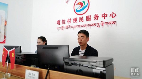 △林芝嘎拉村便民服務(wù)中心提供農(nóng)機(jī)報廢更新補(bǔ)貼、教育獎勵申請等服務(wù)。(總臺央視記者彭漢明拍攝)