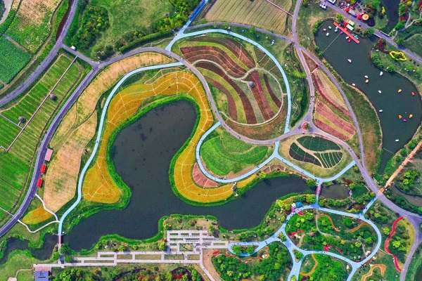 2021年5月2日,空中俯瞰浙江省杭州市余杭區(qū)徑山鎮(zhèn)的千畝繽紛花海(無人機(jī)照片)。新華社記者 徐昱 攝