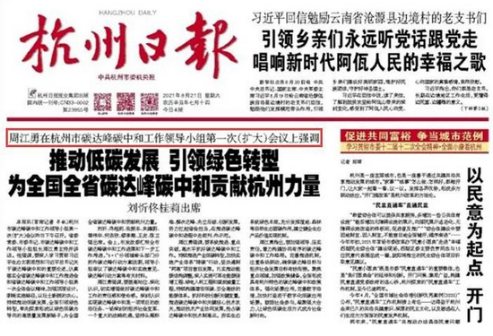 8月20日下午,杭州市委書記周江勇還在以“市碳達(dá)峰碳中和工作領(lǐng)導(dǎo)小組組長(zhǎng)”的身份出席相關(guān)會(huì)議,部署任務(wù)。