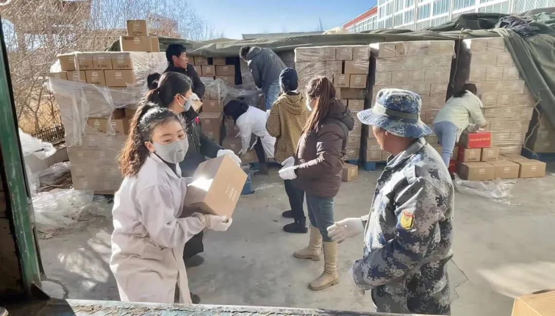 1月12日上午,經(jīng)過(guò)5天跋涉,跨越近4000公里,4輛掛著“陜西加油”橫幅的貨車(chē),滿載防瘟香囊、鮮羊肉、礦泉水等物資抵達(dá)陜西。